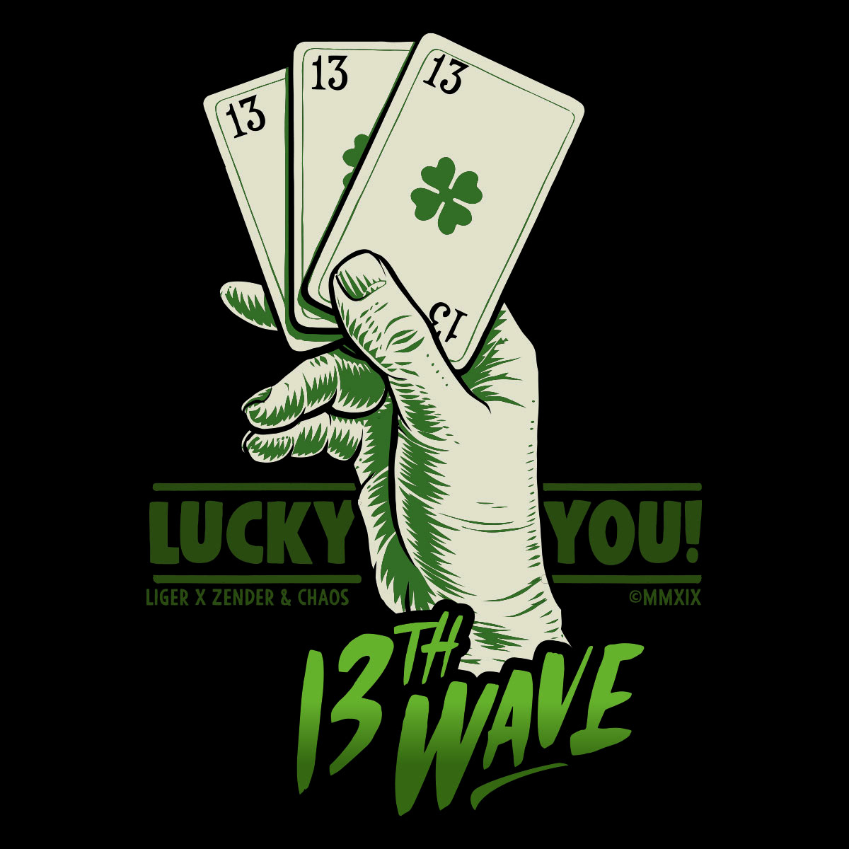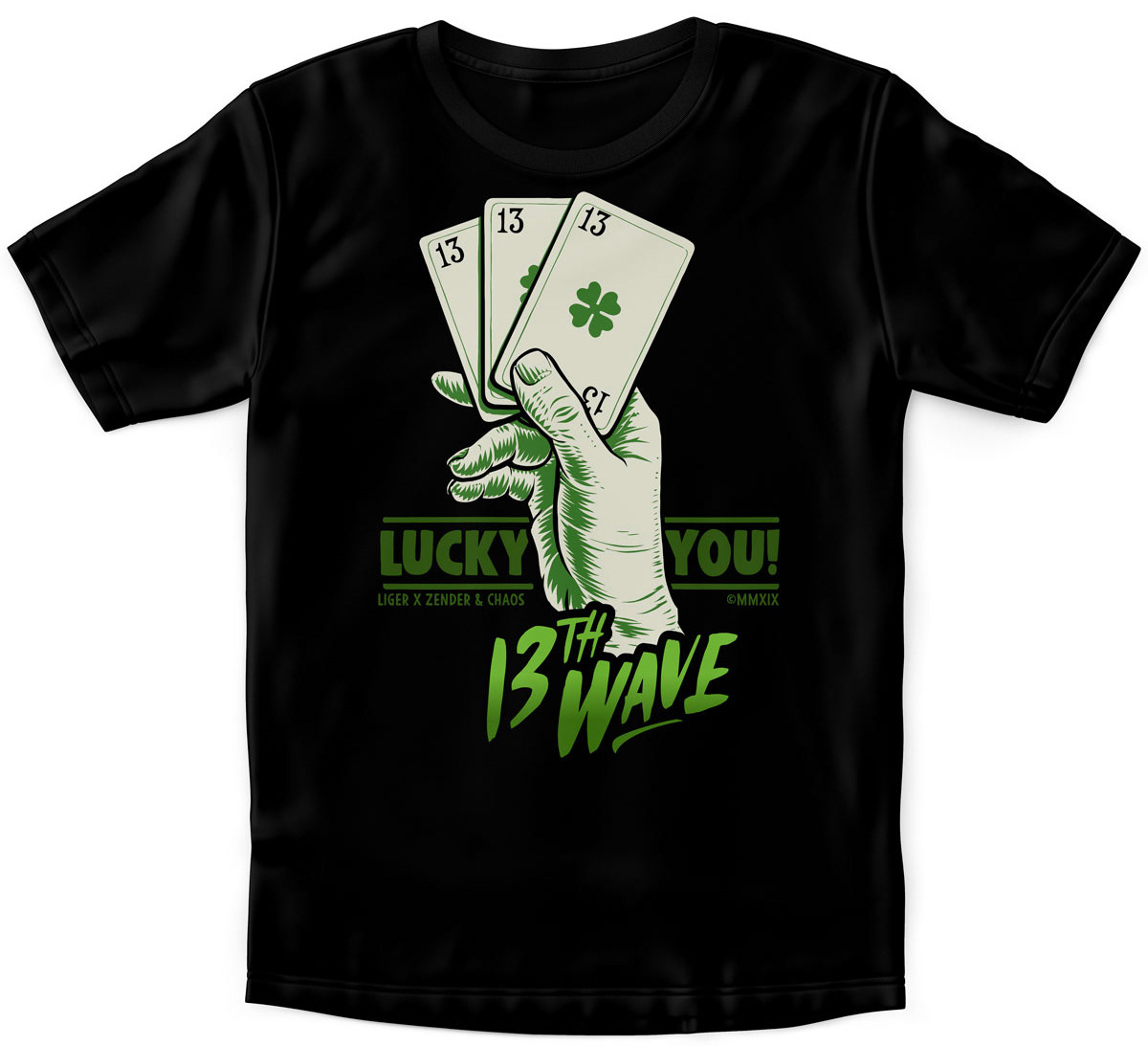 T-shirt company Liger creates various 'waves' (collections) of shirts with selected artists. For the '13th' wave we were asked to do a series of 6 shirts limited to 360 pieces each. We used the number 13 to create a set of (un)lucky shirts. To buy the shirt click here
