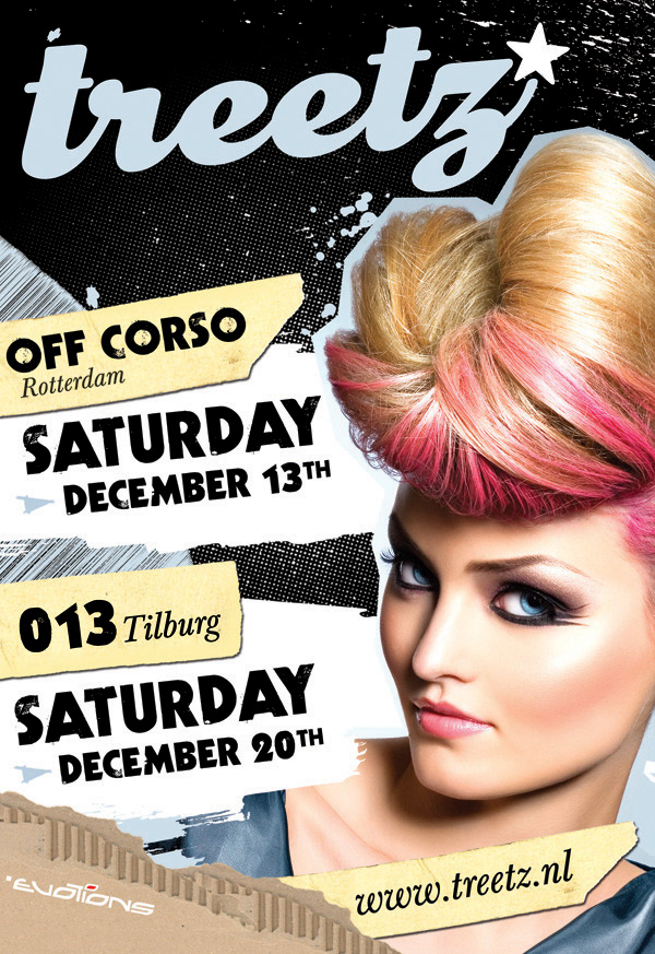 A series of flyers and posters I designed for event organisation: Evotions.